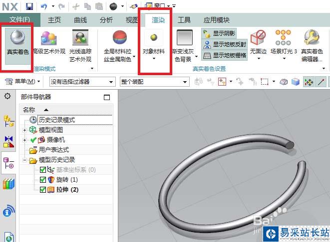 10、如下圖所示,點擊渲染中的真實著色,點擊 對象材料為鋼,最后就如下兩幅圖所示。