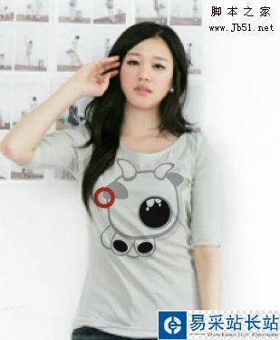 2.選擇好水印。 選擇混合——正片疊底。這個選項非常重要,它能夠讓水印圖片“融”入背景圖片,產生一體的感覺,連衣服上有褶皺的地方,融入后還是會有褶皺。 調節水印大小和旋轉角度 。 圖案就很自然的加在T恤上了。