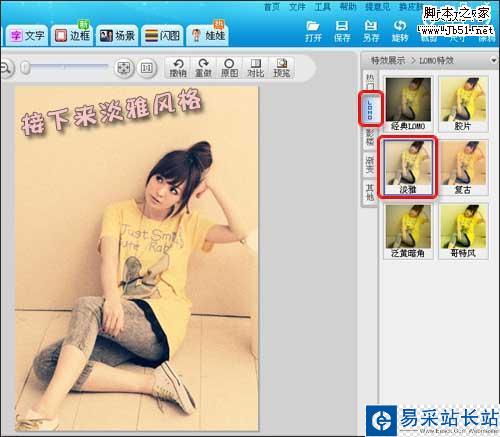 步驟三:照片現在的顏色偏暖色,我們給照片的顏色變淡。選擇LOMO—淡雅。