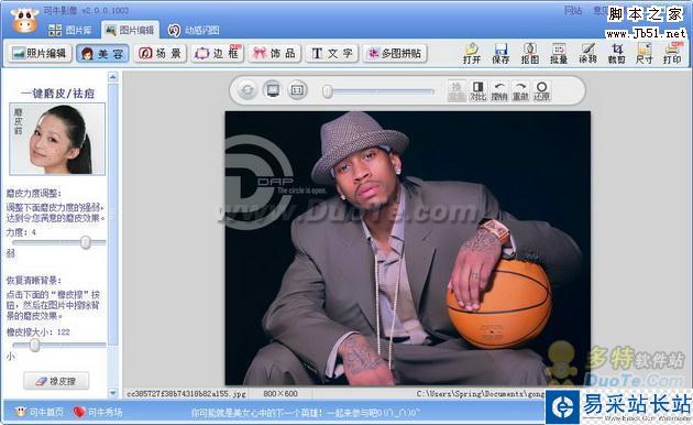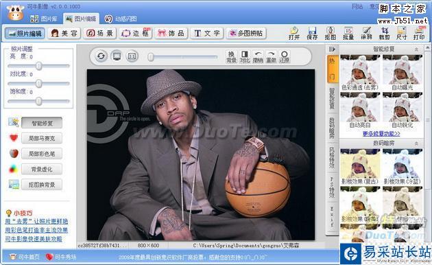 運行可牛影像,點擊“打開一張圖片”按鈕,打開一張艾弗森圖片。如圖01所示。