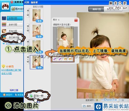 因?yàn)橹拜^早版本的美圖秀秀閃圖DIY功能受到許多用戶的喜愛,使用率很高,但是老是要先點(diǎn)擊一個(gè)閃圖模板,才能替換或刪除圖片,比較繁瑣。所以這次美圖秀秀團(tuán)隊(duì)在2.0.9新版中,特地增加了一個(gè)新的閃圖分類——自己做閃圖,用戶直接點(diǎn)擊這個(gè)標(biāo)簽就能隨意做閃圖,而且增加了調(diào)節(jié)閃圖大小、選取顯示區(qū)域的功能,更加靈活方便。