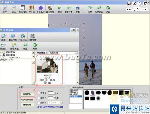 點(diǎn)擊處理界面的左下方—選取圖片,進(jìn)入“文件選擇”對(duì)話框,選擇開(kāi)始戀愛(ài)時(shí)的照片圖2。