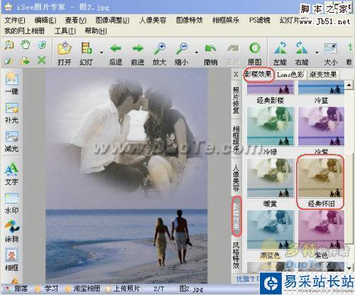 點(diǎn)擊“右側(cè)工具條”—影樓效果—經(jīng)典懷舊。