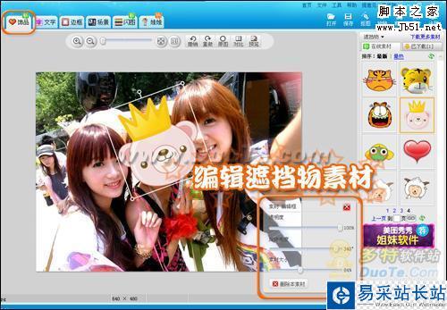 3.圖片里面出現(xiàn)了飄過的路人甲,所以我們再選擇另一款可愛的遮擋物,將照片中無意拍到的路人也擋一下臉。