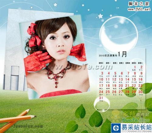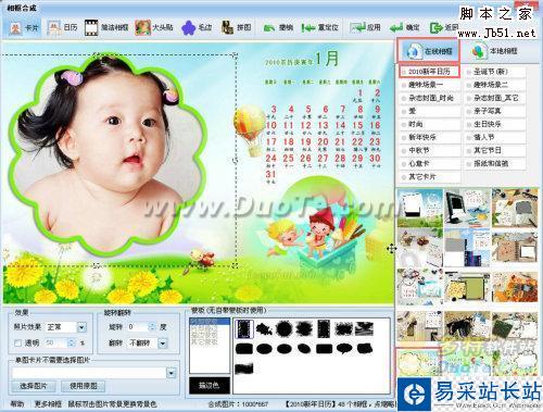 ②.然后進(jìn)入“卡片”的操作界面,選擇 在線相框—2010新年日歷—寶寶日歷1月