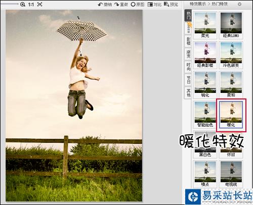 2.試了很多次,貌似使用“暖化”效果是最好的~別看現在這顏色不是很好看,但這只是基礎,這樣打亂了自然顏色,可以讓顏色的轉變更加的隨心如意,想要Feel那可就變簡單了。