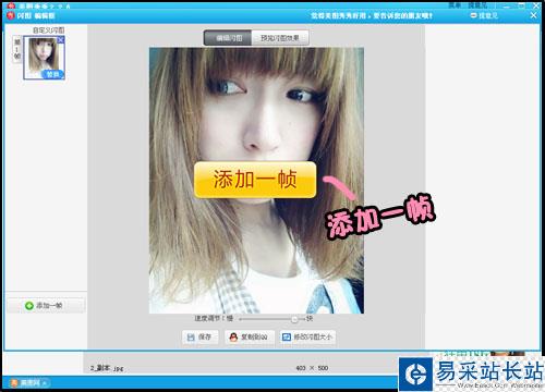 2、進入“自己做閃圖”的編輯框,點擊“添加一幀”按鈕。這里親們要注意了,添加一幀的照片,最好是可以與第一幀的照片有連續性的,因為這樣做成QQ表情,會比較自然。
