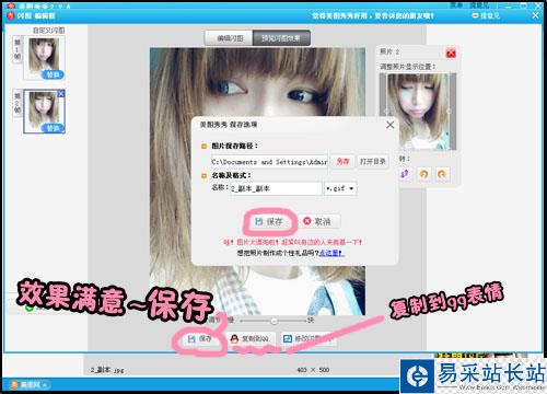 4、預覽效果OK,就可以對最終效果圖進行保存了,你可以選擇另存在電腦文件中,也可以點擊“復制到QQ”的按鍵,然后直接在QQ的聊天框中Ctrl+V即可。