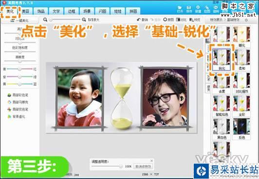 3.點(diǎn)擊“美化”,選擇“基礎(chǔ)”特效里的“銳化”完善圖片效果,就大功告成啦!