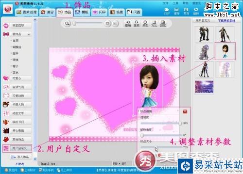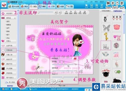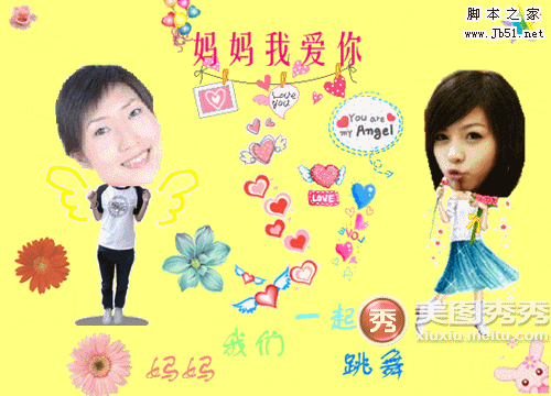 使用美圖秀秀中超N多的飾品來美化一下給媽媽的親情卡!美圖秀秀,給我上飾品!~~