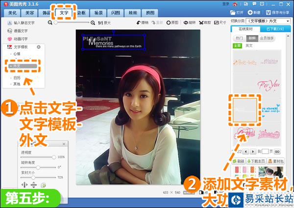 5、最后進入“文字”菜單下,在“文字模板”—“外文”分類中添加相應的文字素材,就大功告成了。