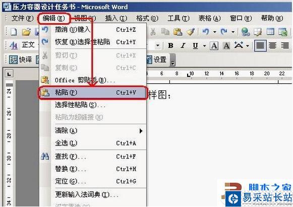 3、切換到WORD或EXCEL,激活需要粘貼的區(qū)域,然后選擇“編輯”—“粘貼”;