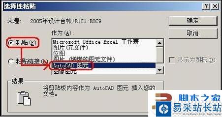 3、選擇粘貼為“AutoCAD圖元”,這樣做的目的是粘貼后可以在CAD里編輯;