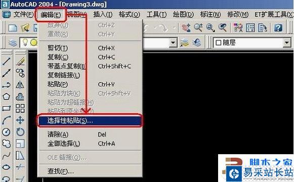 2、切換到CAD程序,然后選擇“編輯”—“選擇性粘貼”;