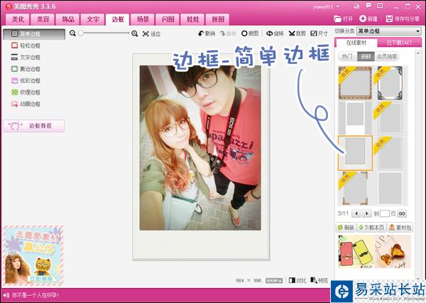4、然后給照片加一個(gè)邊框,進(jìn)入“邊框”菜單下,挑選一個(gè)簡單邊框打造“拍立得”的時(shí)尚效果。