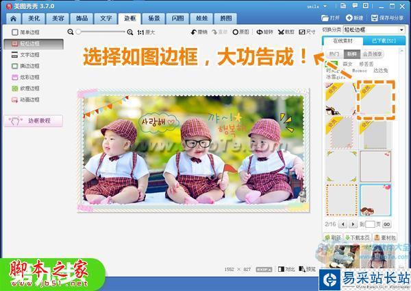 9、再選擇如圖邊框,簡單的疊加可以打造出獨一無二的邊框效果哦!多胞胎效果這就大功告成啦!