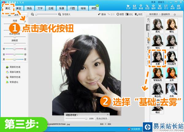7、最后選擇“去霧”和“銳化”特效,讓照片更加明亮并且清晰。