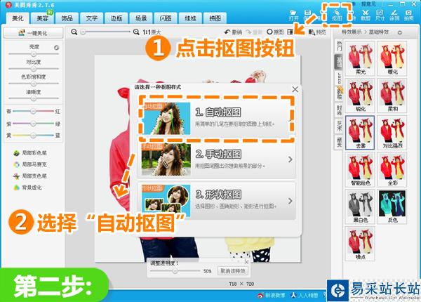 2、然后點擊“摳圖”按鈕,選擇“自動摳圖”,準備將人物摳出來。