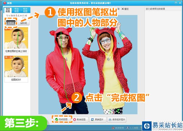 3、選擇“摳圖筆”摳出圖中的人物部分,并點擊“完成摳圖”,摳出圖中人物部分。