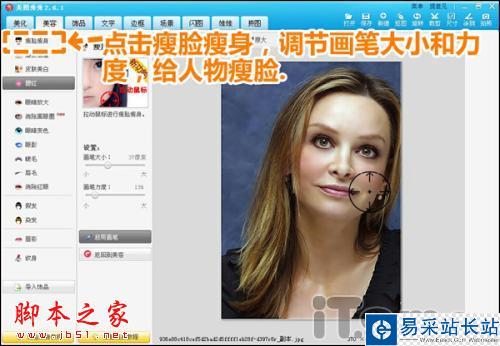 4.再選擇“瘦臉瘦身”功能,調節畫筆力度和大小,給人物瘦臉瘦身。