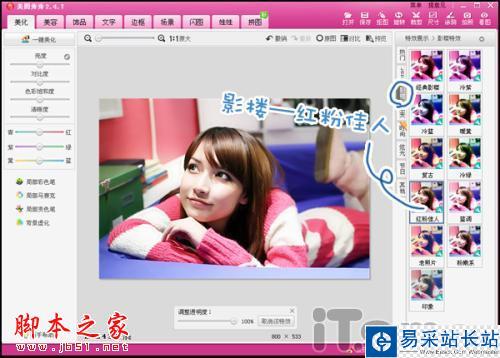 第三步:前期基礎做好之后,就來給照片調色吧。先用一個“紅粉佳人”特效。