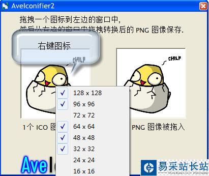 2.拖入后,軟件會自動轉換為ico,轉換成功后可右鍵選擇圖標尺寸。
