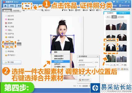 2、選擇一件衣服素材,調整好大小位置后,右鍵選擇合并素材