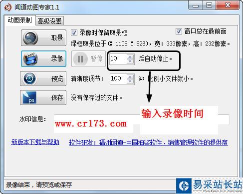 如果大家對自己錄制的gif圖的清晰度不滿意,我們可以在高級設置里面調節。