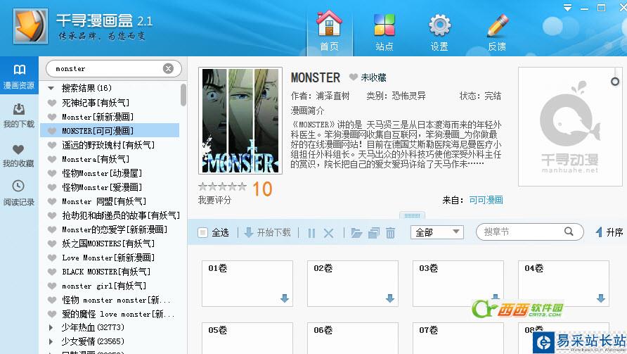 比如小編想搜索“monster”很快就有結果哦,而且還是各大漫畫網站的資源,可靠穩定。