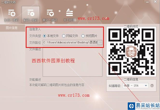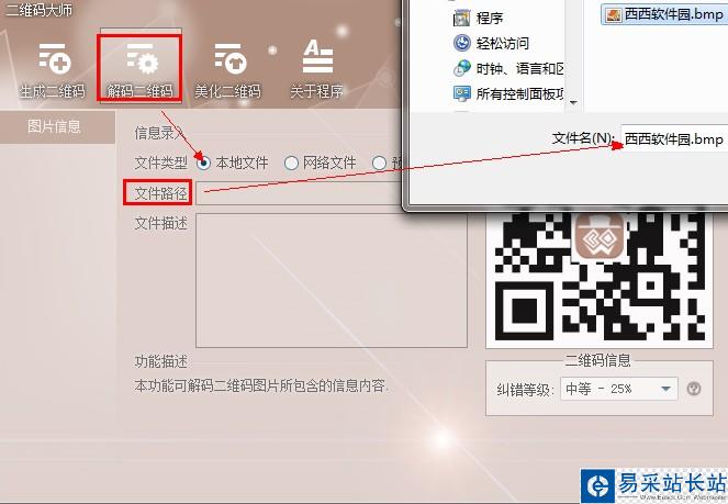 方法:選擇文件類型,文件路勁,西西剛才制作了一個,就用那個二維碼舉例哦!