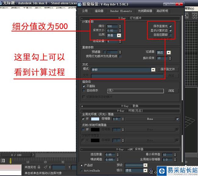 四、燈光緩沖的設置。這里細分值我給了500,當然數值越高圖的質量越好,這里根據自己電腦配置來選擇。