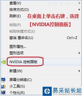 1、桌面上單擊右鍵,打開【NVIDIA控制面板】: