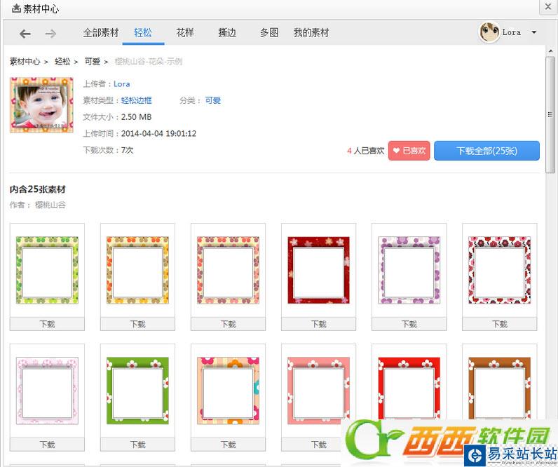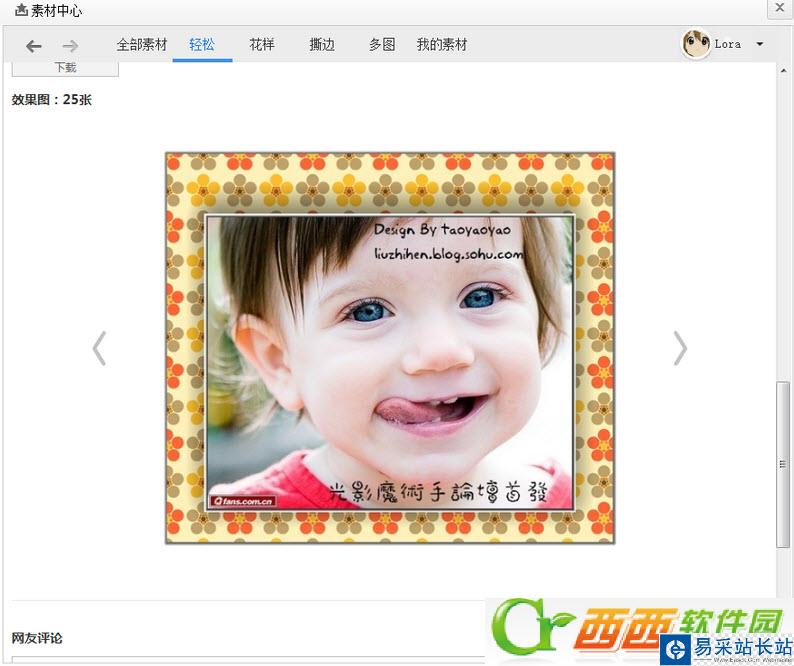 目前素材類別有:輕松邊框,花樣邊框,撕邊邊框,多圖邊框 (更多素材類別敬請期待...)