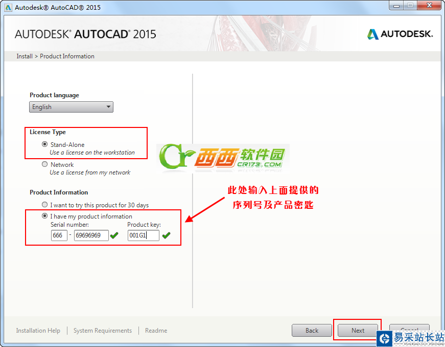 4、選擇許可證類型并輸入產(chǎn)品信息,輸入上面給大家提供的序列號(hào)及產(chǎn)品密匙