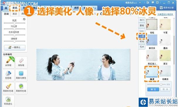 4、然后選擇“美化”模塊中的“人像”,選擇80%冰靈,提升整個畫面的亮度。