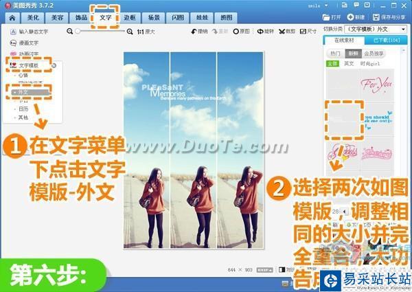 6、最后進入“文字”菜單,點擊“文字模版-外文”,選擇兩次如圖模版,調整相同的大小并完全重合