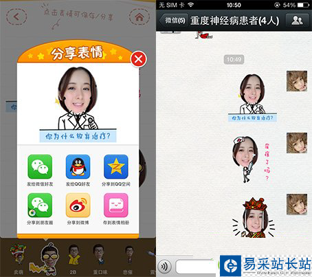 然后,生成各種二逼表情之后,點擊表情就可以保存或者分享,最重要的當然是分享到微信啦!做好的表情不但可分享到朋友圈吸引小伙伴們過來點贊,也可以直接發給微信好友或微信群哦~