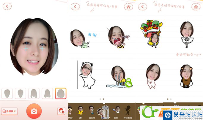 按下拍攝獲取頭像之后,你就可以方便地進行表情調整選擇了,各種萌賤二逼表情任君選擇,節操已掃地,路過請無視。具體不多說,真要裝起來試試才能知道有多么歡樂~