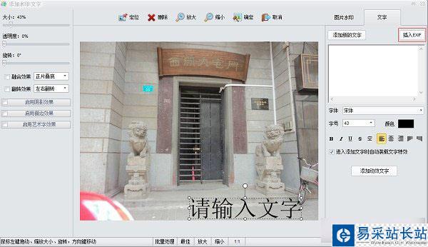 第二步:進(jìn)入文字的編輯界面,點(diǎn)擊文字輸入框右上角“插入EXIF”