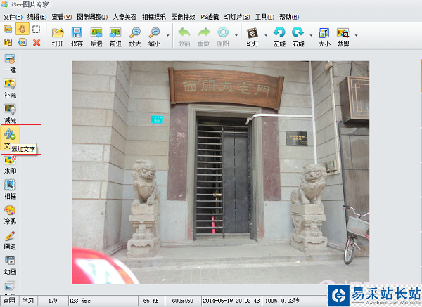 第一步:選擇你要添加日期的相片用ISEE圖片專家打開(kāi),點(diǎn)擊“文字”。