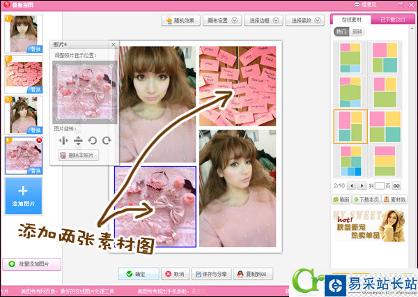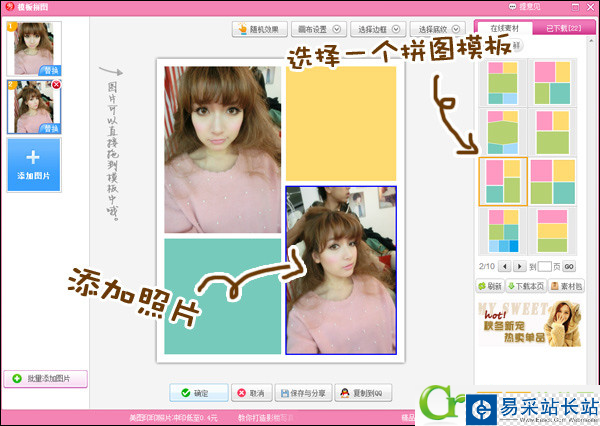 第一步:在“美圖秀秀”軟件下打開一張圖片,進(jìn)入“拼圖”菜單下,在跳轉(zhuǎn)出來的界面中選擇“模板拼圖”樣式。