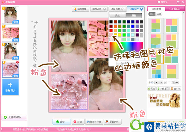 第四步:點(diǎn)擊界面上方的“選擇底紋”,在下拉顏色選擇器中選擇與圖片相對應(yīng)的邊框顏色。