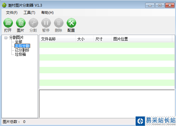 潮村批量圖片分割器是一款綠色免費的圖片批量分割器,可以將一些大的圖片分割成幾個小塊,方便用于移動設備上的瀏覽,也可以將一張完整的圖片分割成好幾小塊用于現在比較流行的照片墻使用。應用到的地方還是很多的。