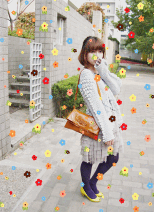 1.多色碎花飄落。Yummy個人最喜歡這個效果了,讓照片顯得特別優雅、恬靜,如果天上真下起了花雨,該是多么浪漫啊!嘿嘿!
