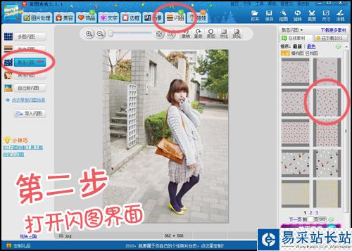 然后,選擇“閃圖”界面里“飄落閃圖”功能,并在右邊選擇喜歡的飄落閃圖效果。(右豎構圖和橫構圖選擇哦!)
