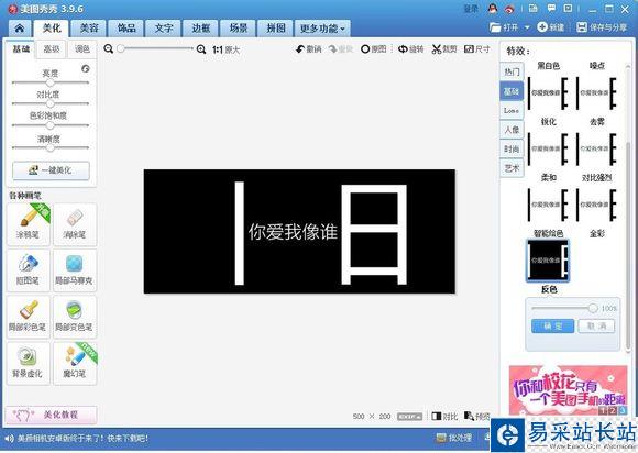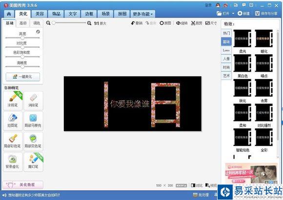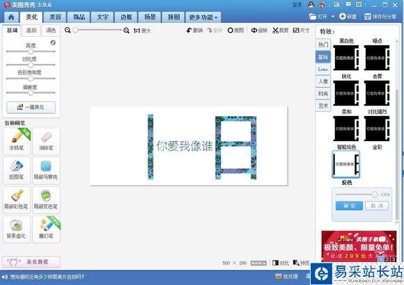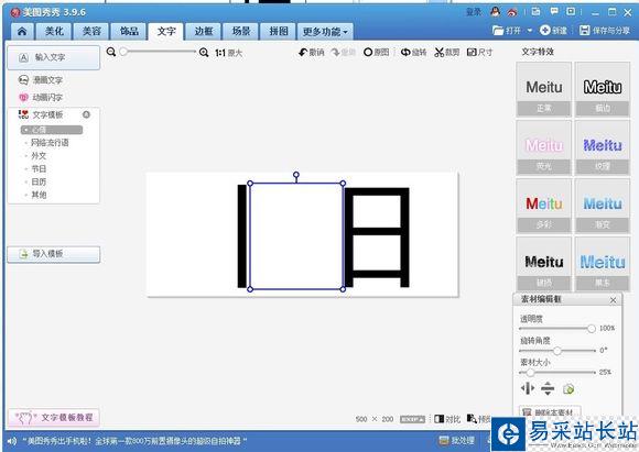 4.把中間部分用一張白色圖片蓋住,鼠標(biāo)右鍵添加圖片,添加白色圖片,最好先把那兩個(gè)字合并了,然后再合并白色圖片。(白色素材以及印花素材的圖片在最下方便可看到)