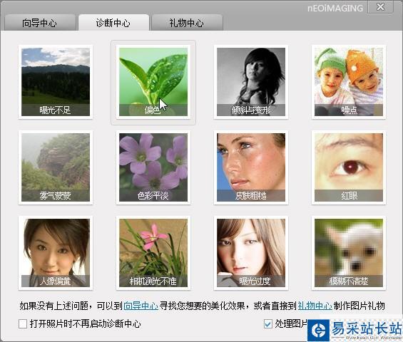 新版的光影魔術手提供了一個“診斷中心”的功能(如圖2),已將常見的照片修復功能羅列其中,方便操作。我們只要單擊相應的修復功能,再打開照片操作即可(如圖3),完成后會返回到向導窗口繼續(xù)操作。