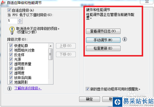 5、點擊上圖紅框中的“手動調節”,打開“手動性能調節”窗口,如下圖所示: