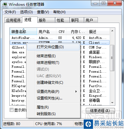 2.切換到“進程”界面,右鍵點擊“xiaochenkantu”,選擇打開文件位置。回到任務管理器,選中“xiaochenkantu”點擊結束進程,然后再回到剛才打開的小晨看圖文件夾,刪除小晨看圖的安裝程序。提示:下圖僅為示意,小編偶然間遇到的小晨看圖這個流氓軟件,沒有及時截圖。