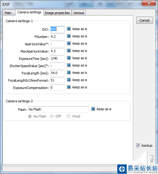 被你修改過的照片,軟體都會自動幫你另外復制一個檔案并在後頭加上「_original」的字樣,避免你改錯時,想重設時已經(jīng)忘記原先設定了,不過平常較少用到Exif編輯,很多人都是拿來編輯舊照片,幫以前沒有這些資訊的照片加上去。